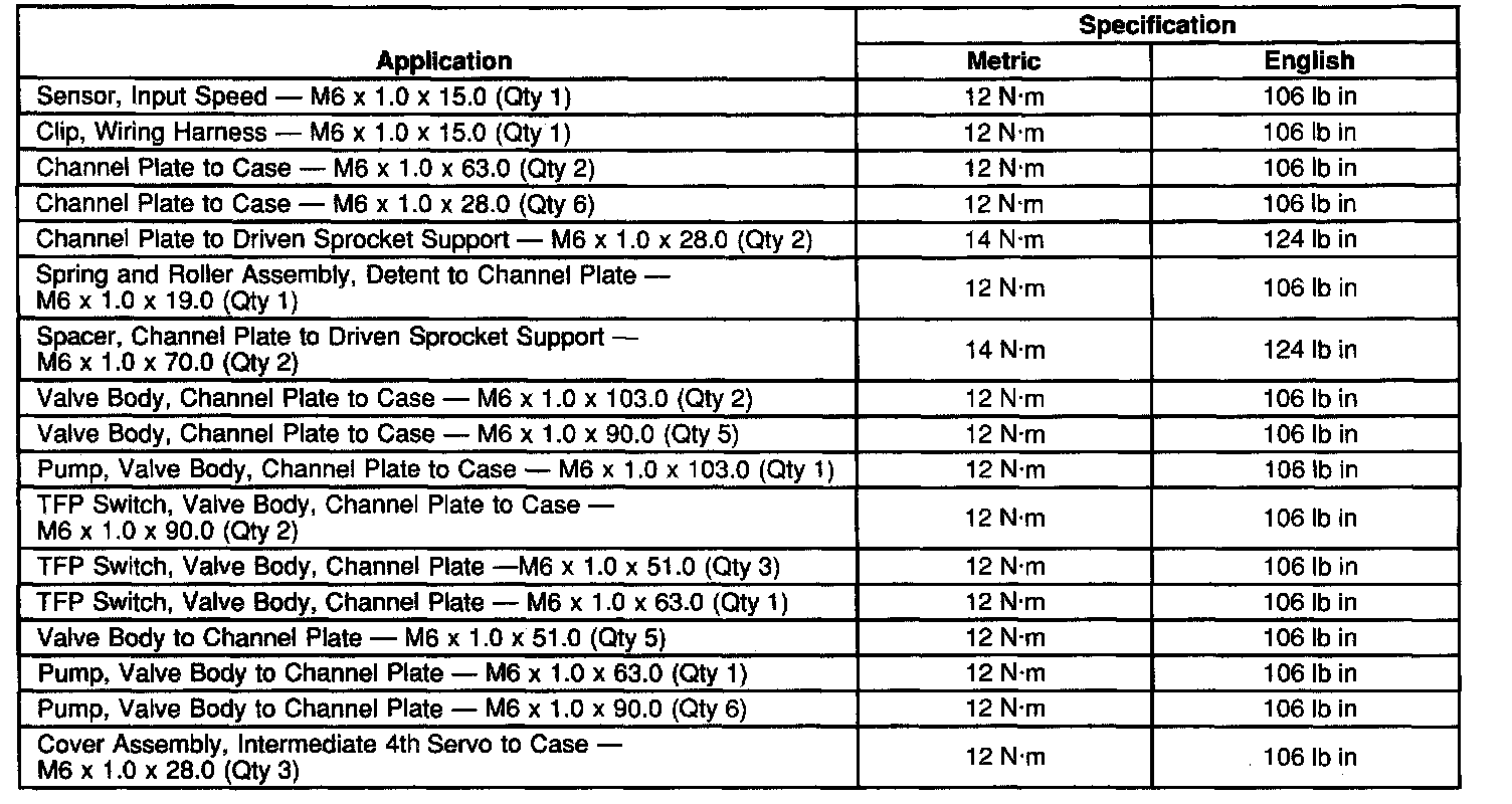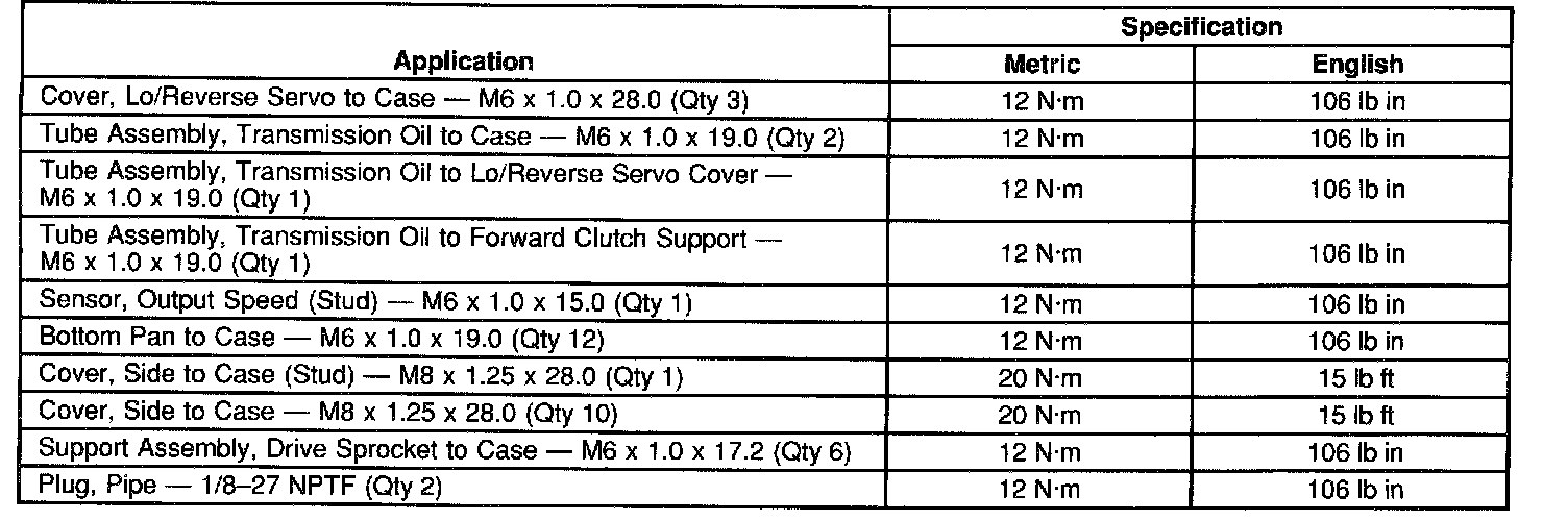 Fastener Tightening Specifications