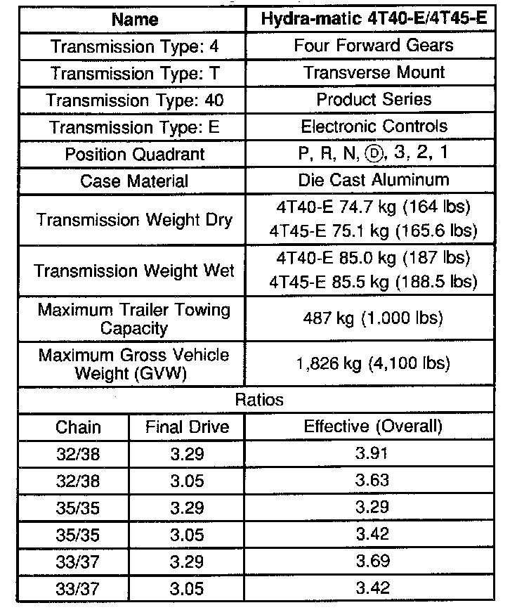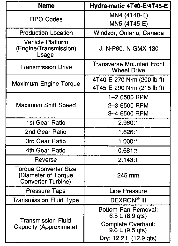 Transmission General Specifications