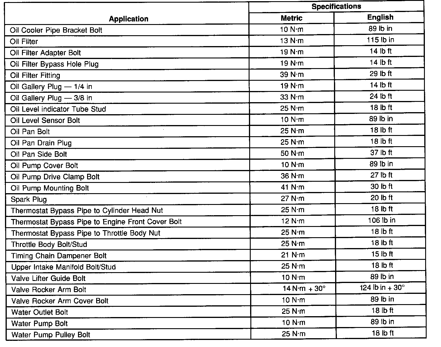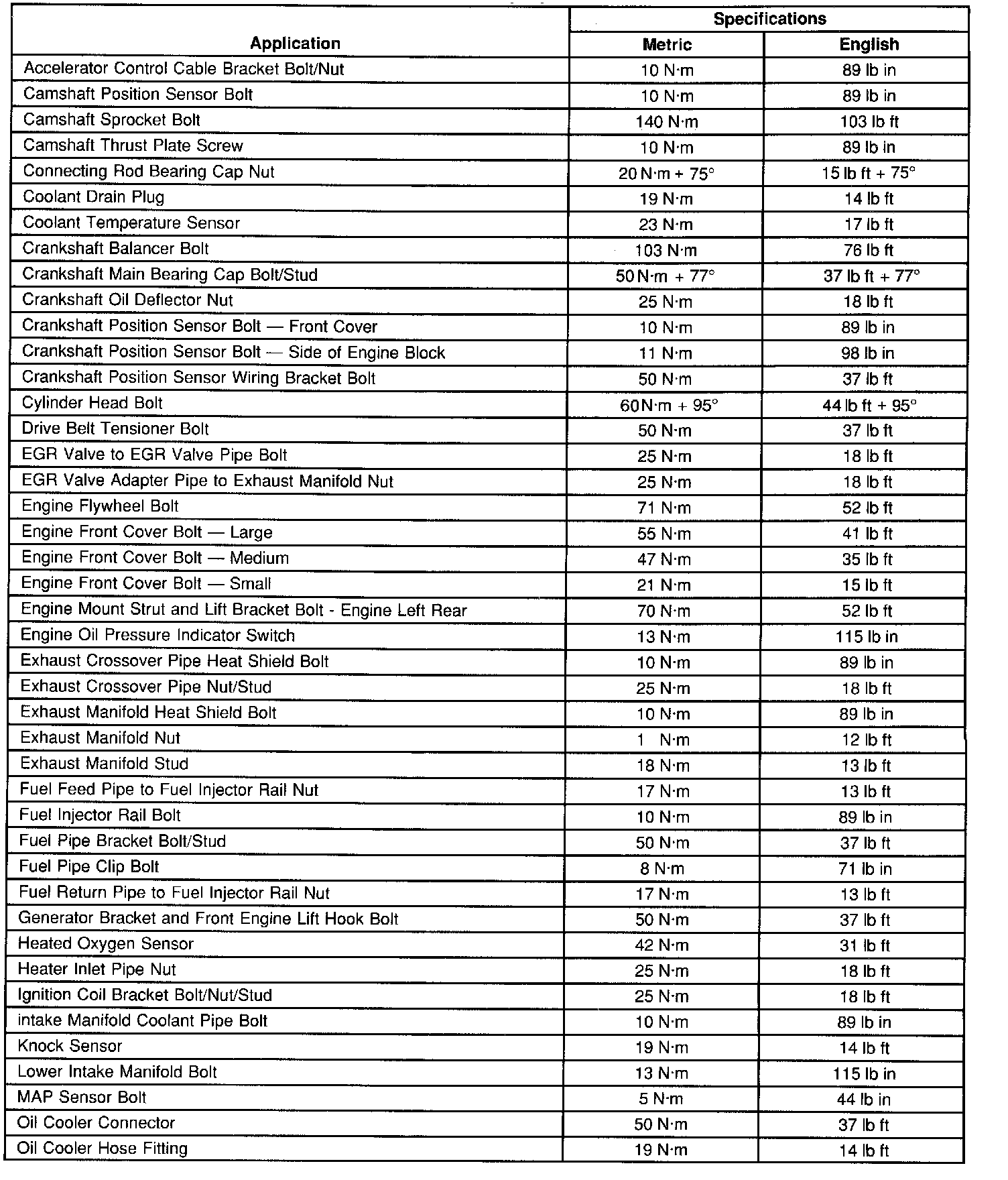 Fastener Tightening Specifications
