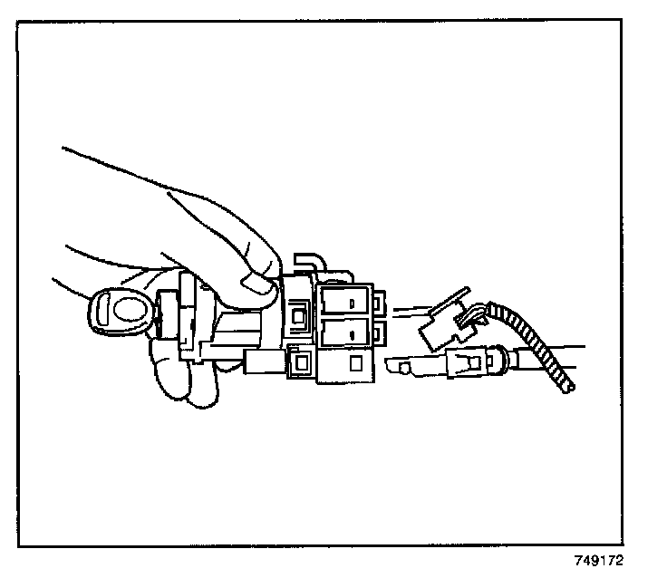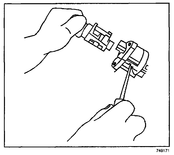 13. Press the cylinder release plunger. The release plunger is located at the four O'clock position on the ignition switch housing.