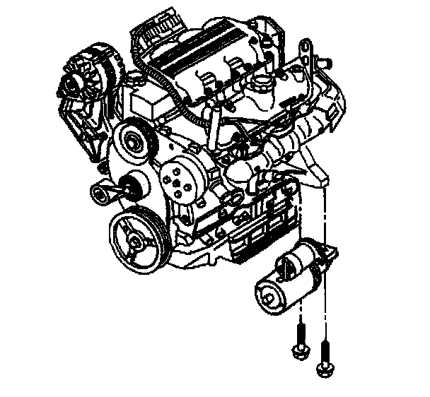 4. Remove the starter motor-to-engine bolts, then lower the starter.