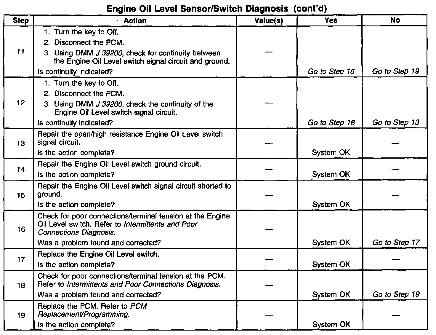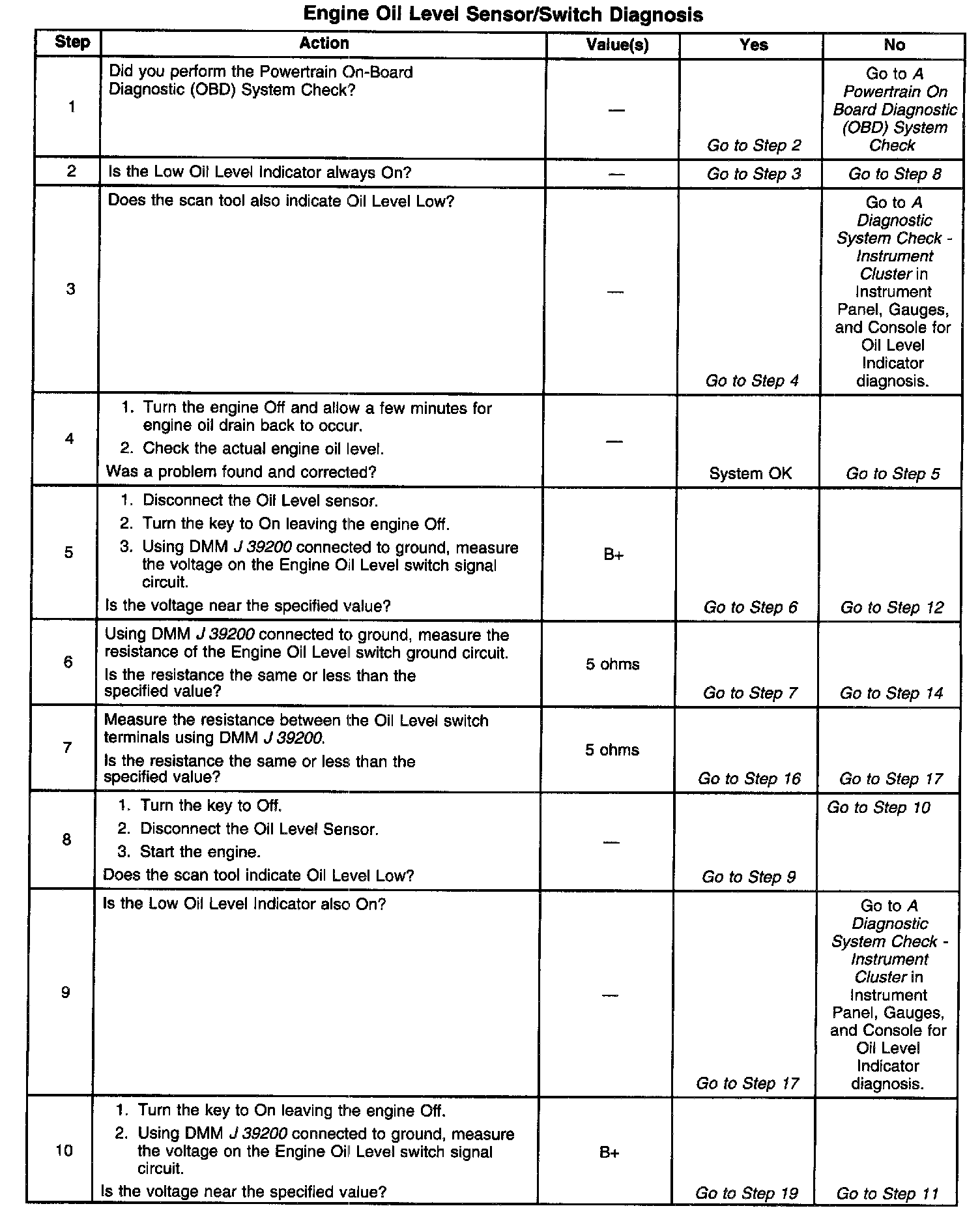 Engine Oil Level Sensor/Switch Diagnosis