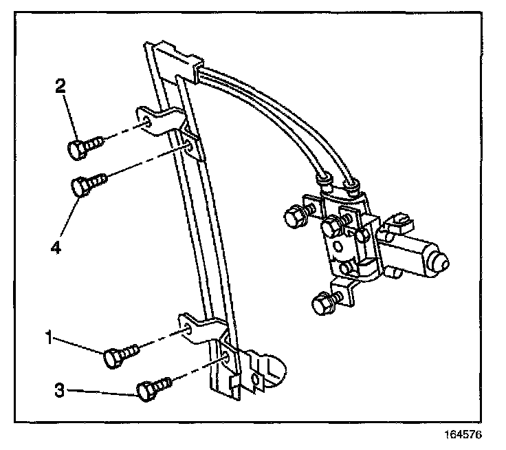 2. Install the window regulator to door bolts (1,2,3,4).