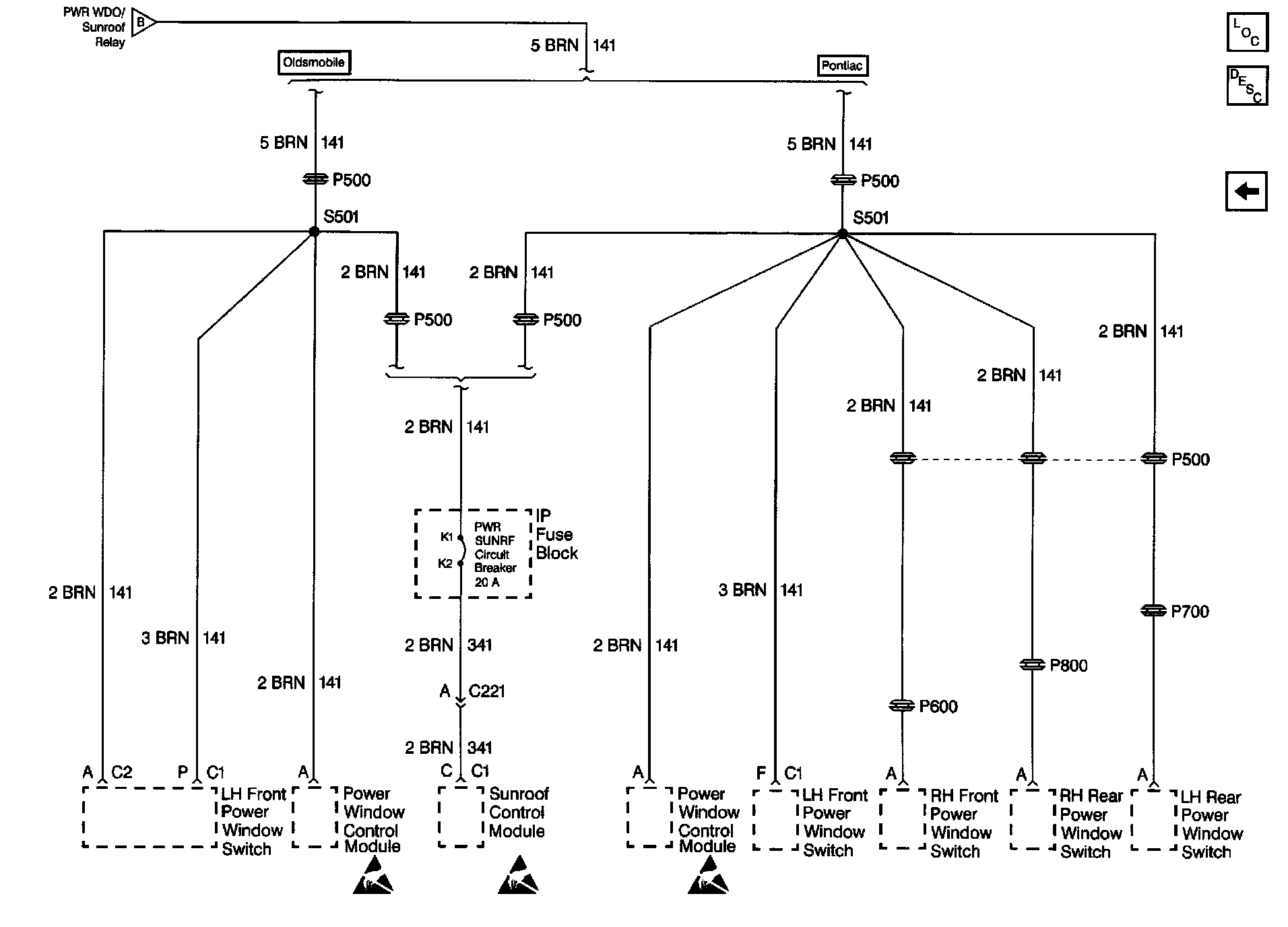 Retained Accessory Power (RAP) Schematics (Pontiac/Oldsmobile): Window Switches: