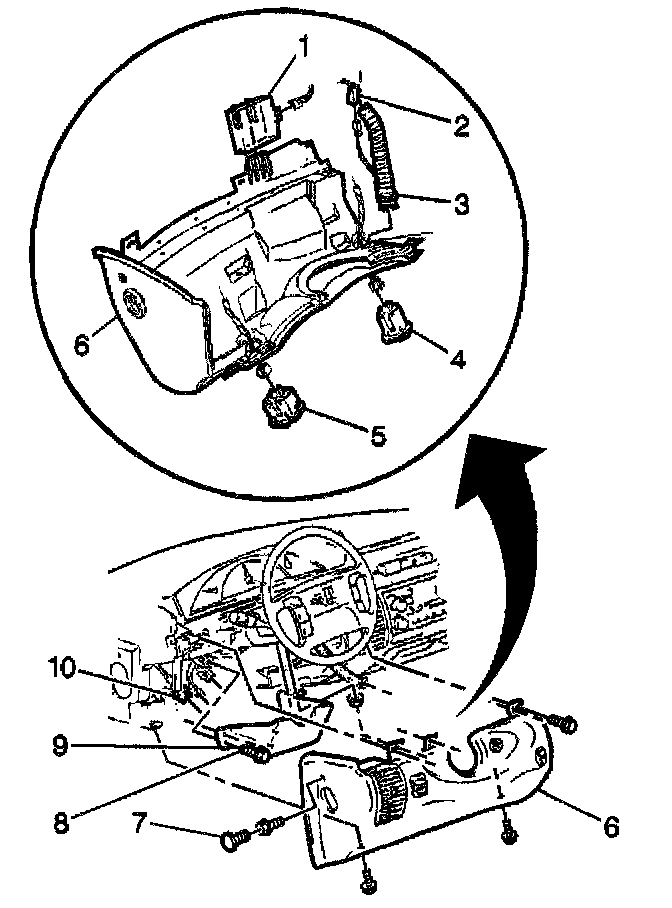 3. Install the sensor (3) to the knee bolster assembly (6).