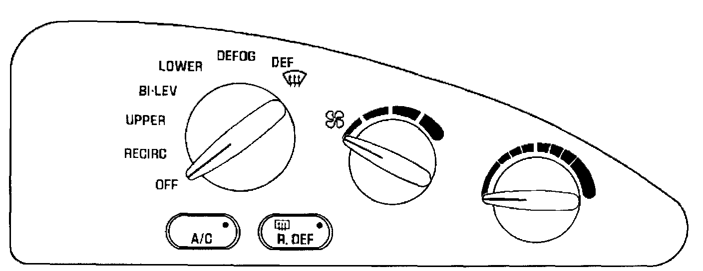 The heater and A/C control is the vehicle operator's control point for the manual air conditioning system. The heater and A/C control includes the following components: