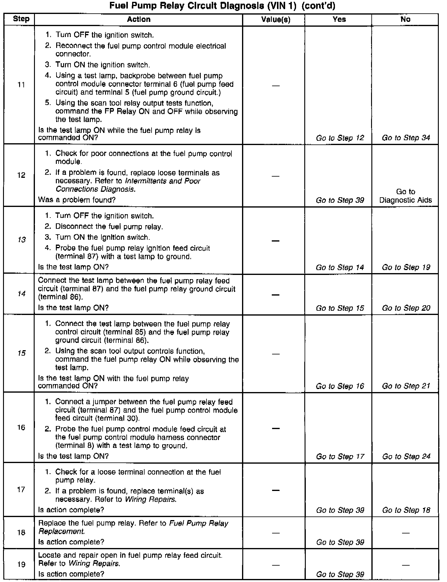 Fuel Pump Relay Circuit Diagnosis