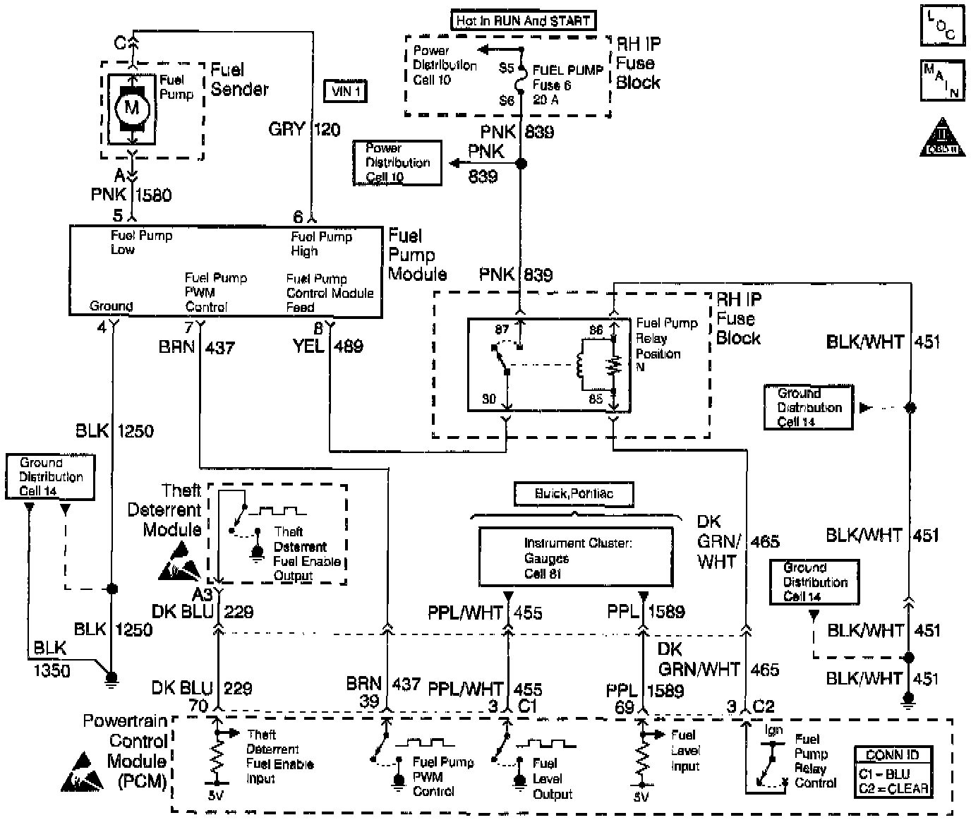 13. Checks the ignition feed circuit to the fuel pump relay contacts.