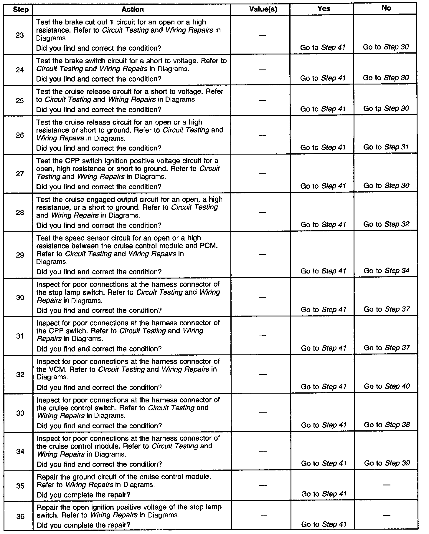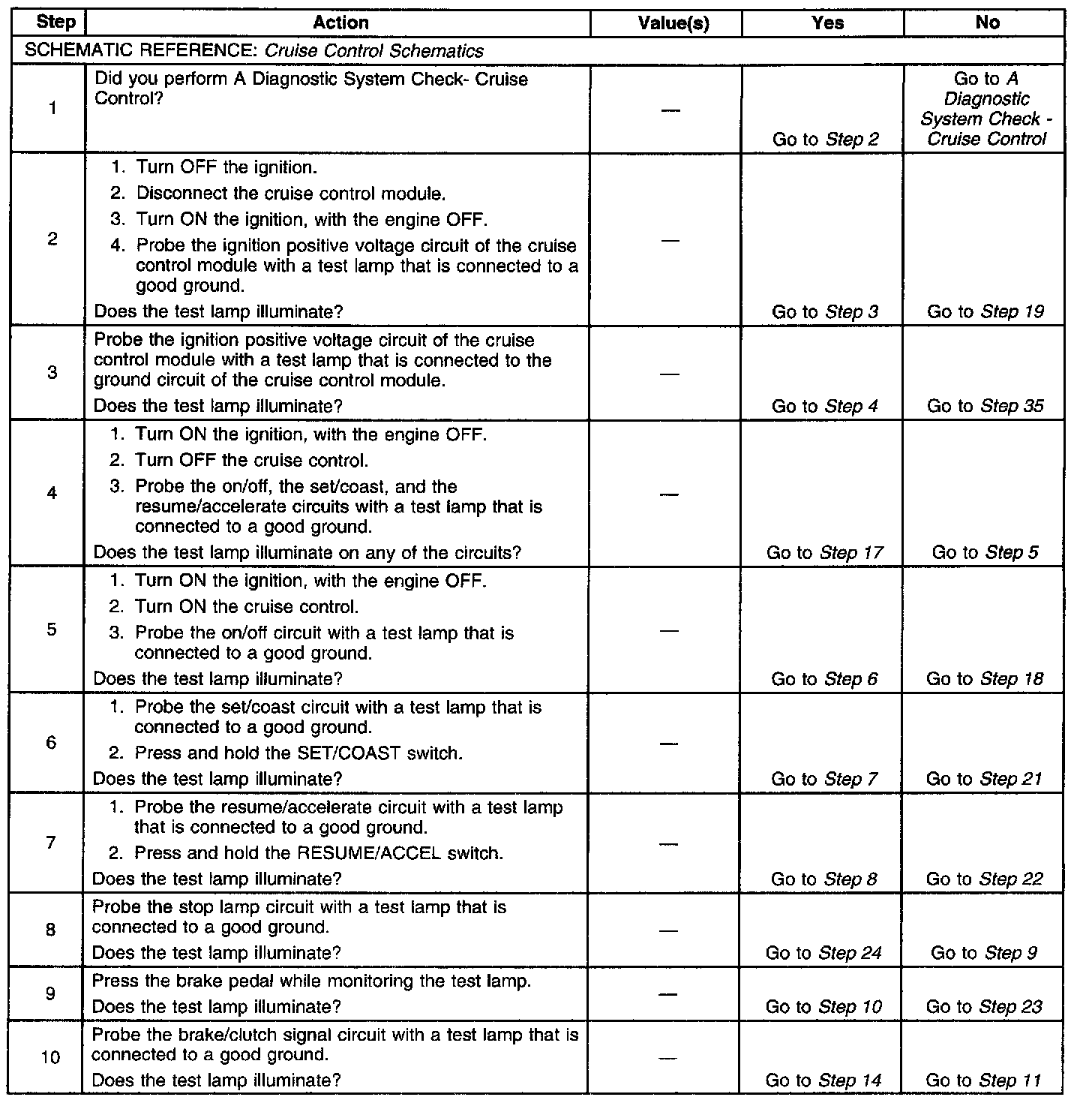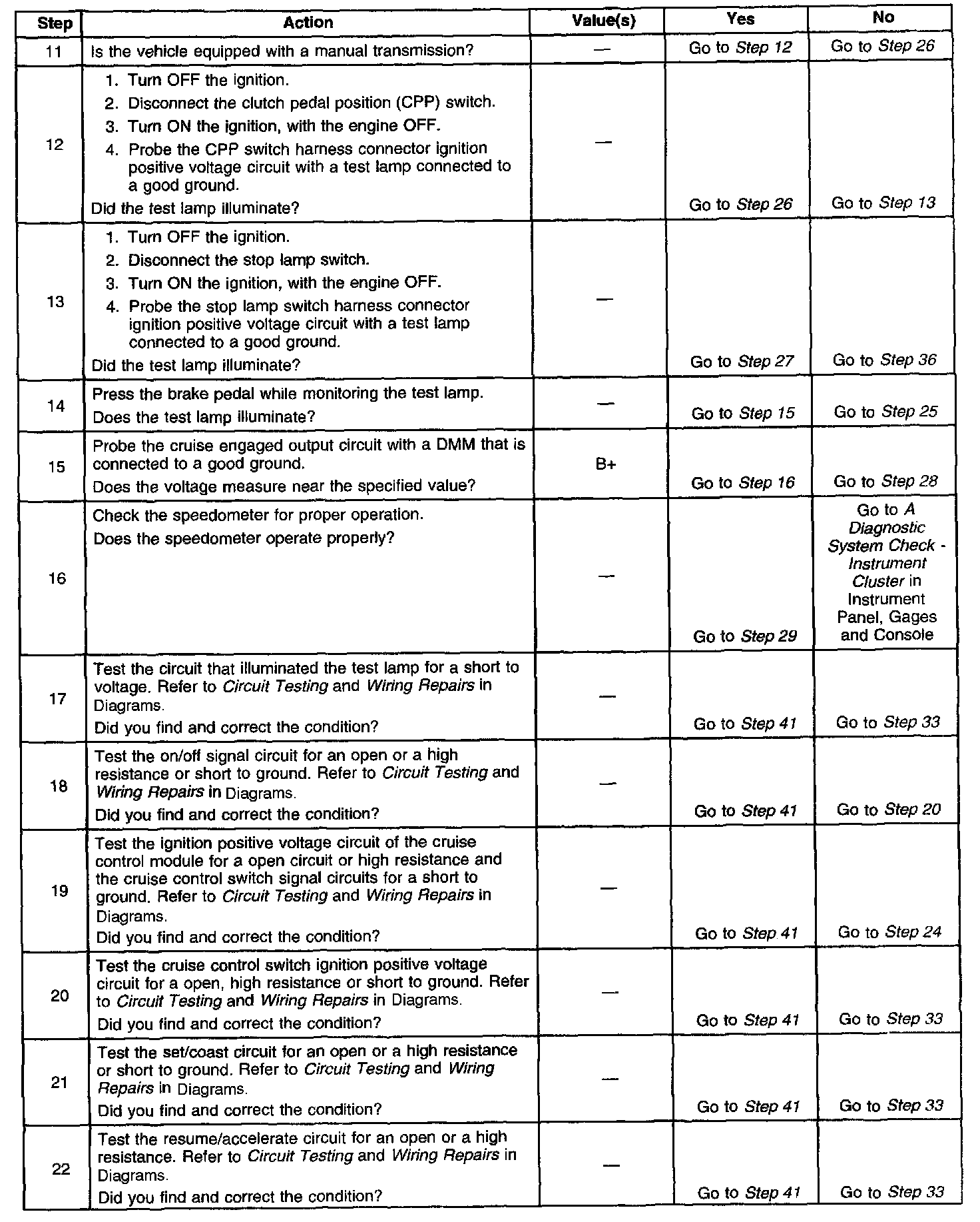 The vehicle speed is greater than 40 km/h (25 mph) Cruise Control Inoperative/Malfunctioning