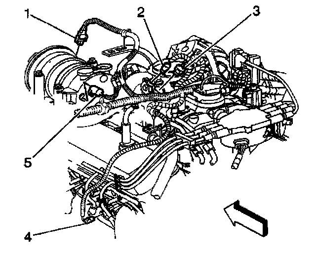 13. Remove the bracket for the engine wiring harness from the intake manifold stud.