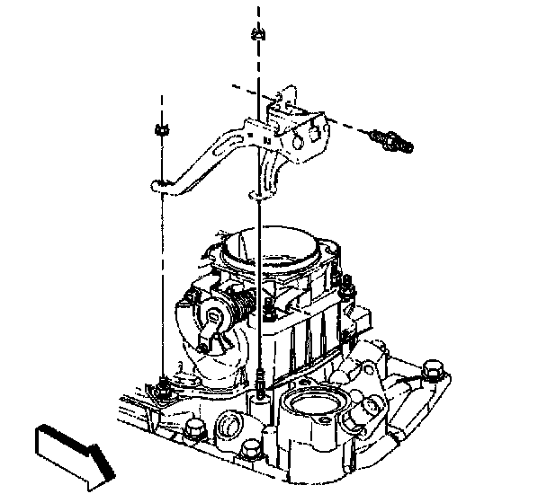 10. Remove the accelerator cable bracket from the throttle body and the intake manifold.