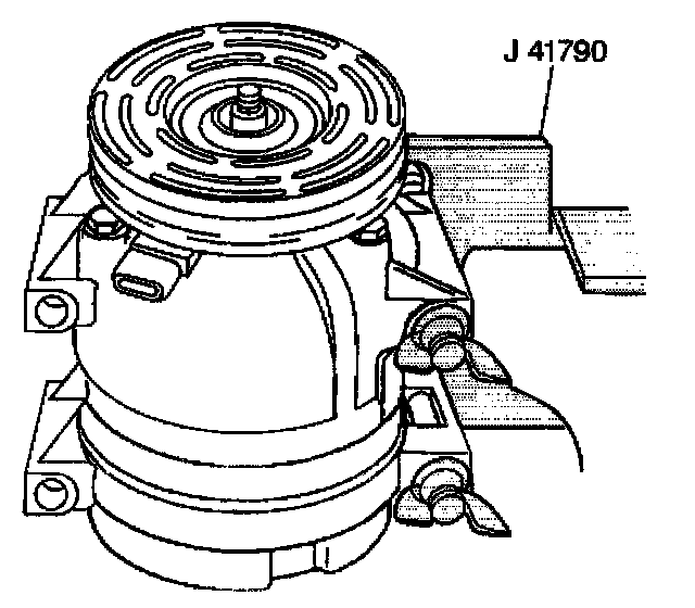 2. Clamp the compressor holding fixture, J 41790 in a vise and attach the compressor to the J 41790.