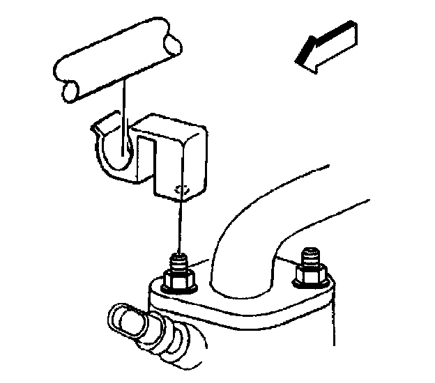 9. Install the heater outlet hose to the retaining clip at the engine water outlet.