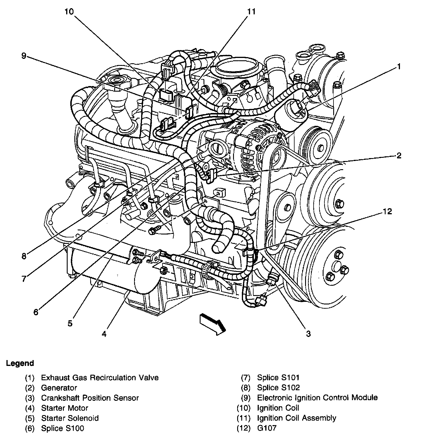 Harness Routing Views (4.3L Engine Generator And Starter Locator View):