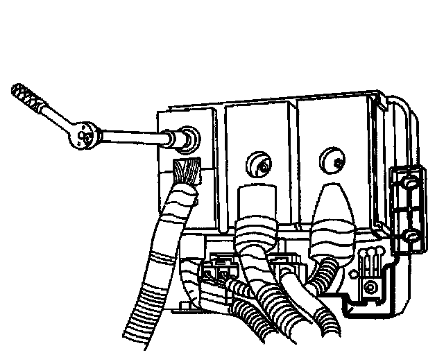 6. Loosen the bolts that secure the electrical connectors to the bottom of the underhood fuse block.