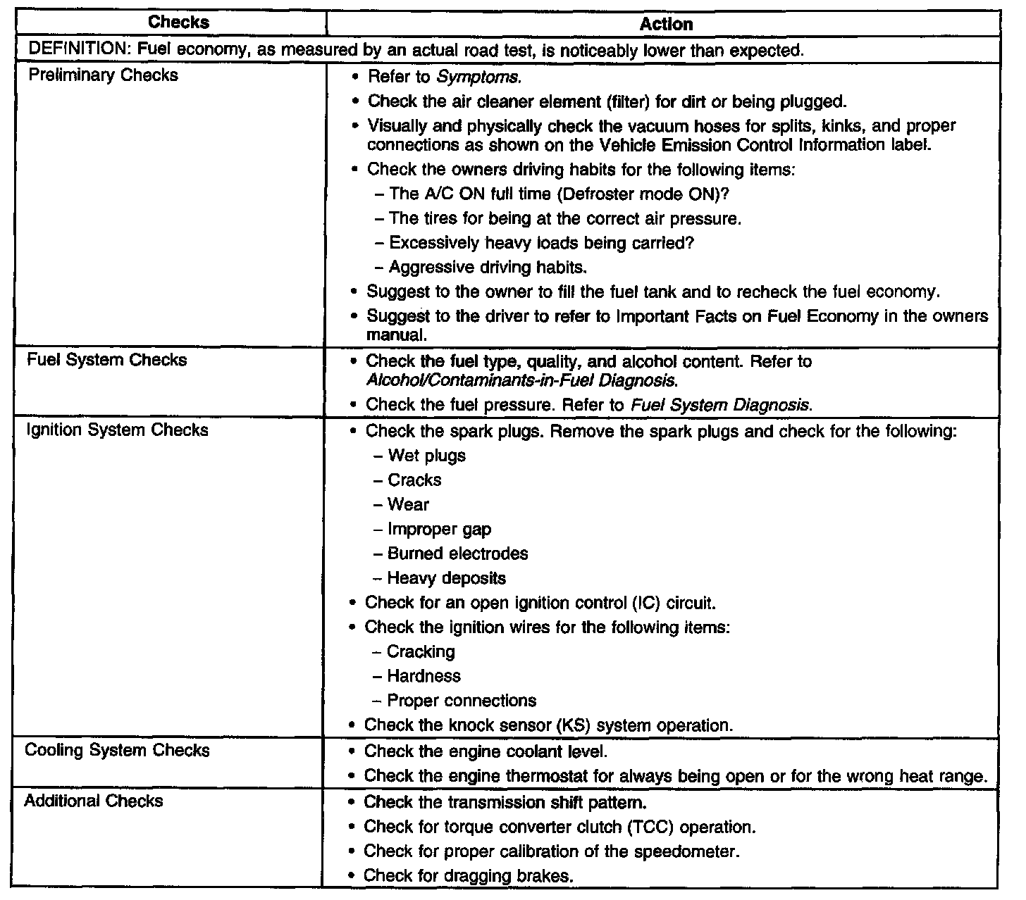 Poor Fuel Economy