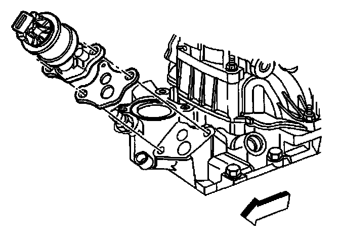 REMOVAL PROCEDUREIMPORTANT: Note the orientation of the EGR valve at the BASE before removing. Do not use the electrical connector as an indication of valve orientation. It is possible to install this EGR valve backwards. An EGR valve installed backwards may cause a rough idle and set DTCs.