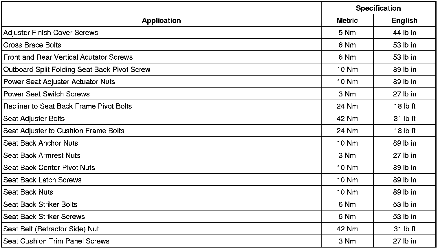 Fastener Tightening Specifications
