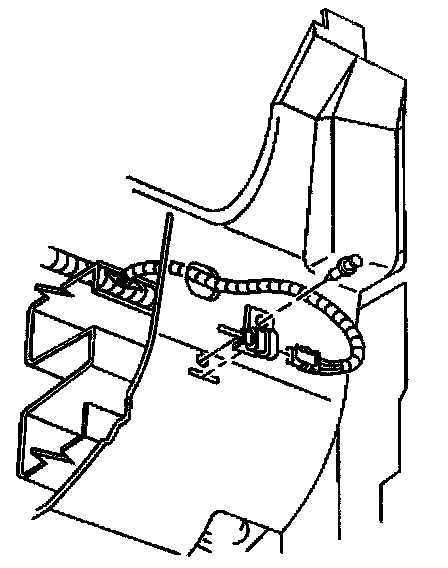 2. Connect the electrical connector to the sensor. Verify the electrical connection at the right hand rail near the shock tower base.