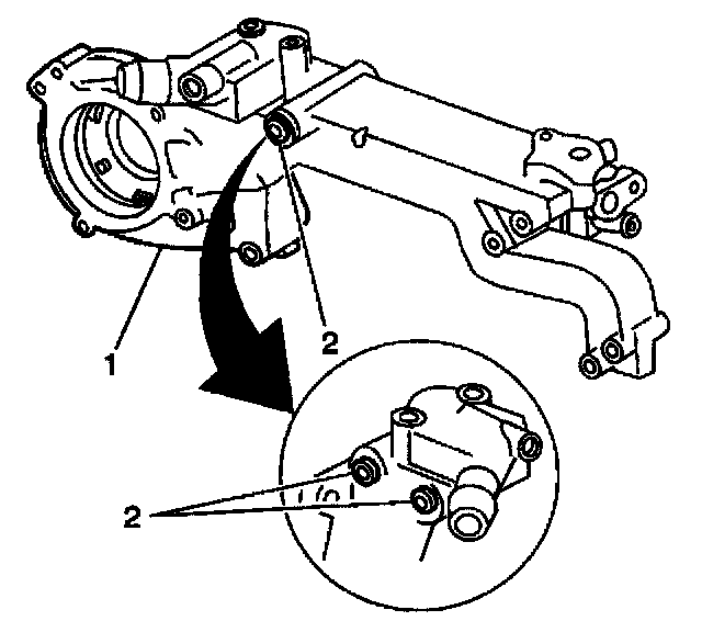4.2. Remove the 2 plugs (2) and clean the passages with a wire brush. Remove all loose particles.
