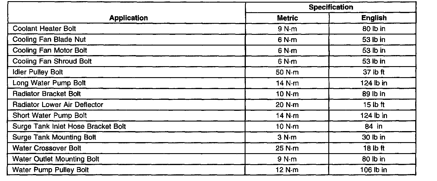 Fastener Tightening Specifications