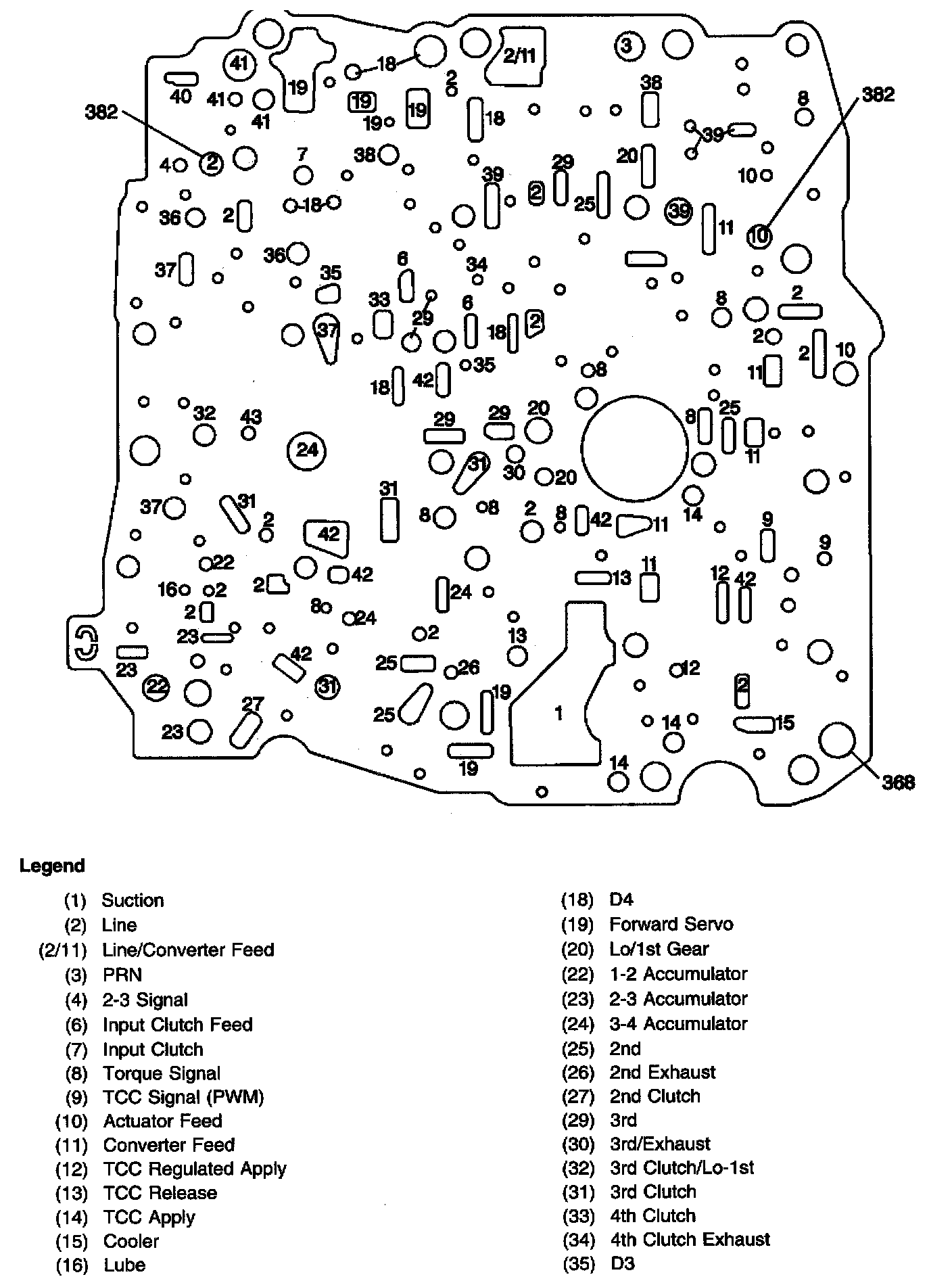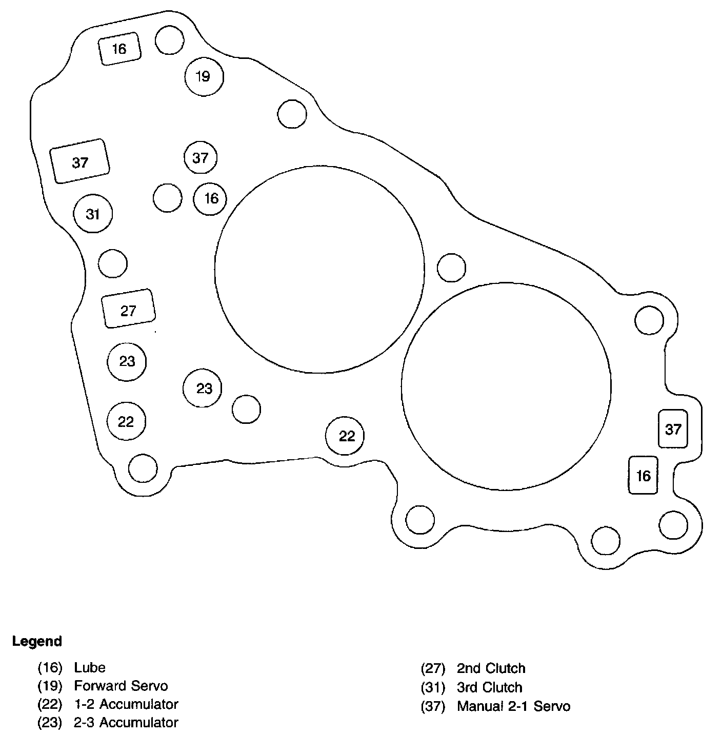 1-2 and 2-3 Accumulator Housing Fluid Passages
