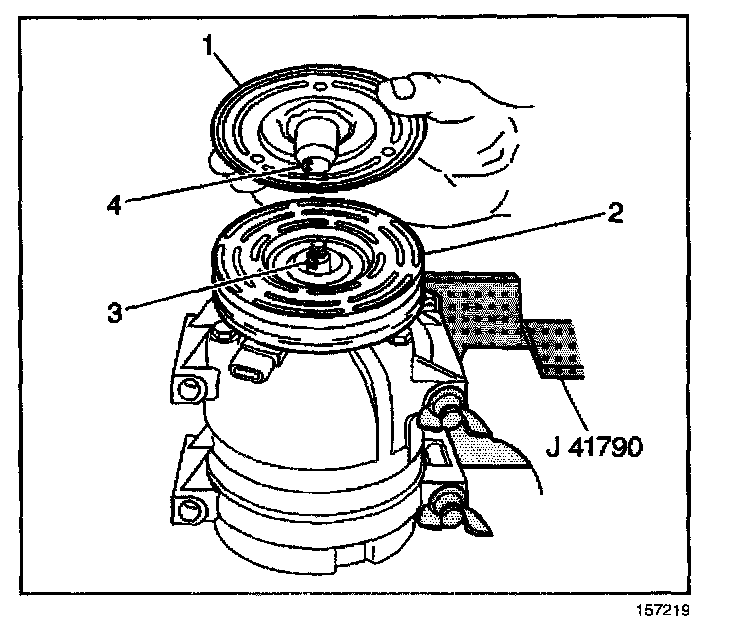 3. Align the shaft key with the shaft keyway in the clutch plate and the hub assembly and place onto the compressor shaft (3).