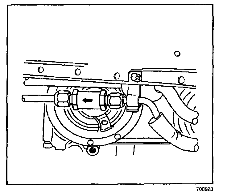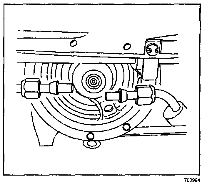 1. Install the liquid line into the A/C refrigerant filter. Hand tighten the nuts.