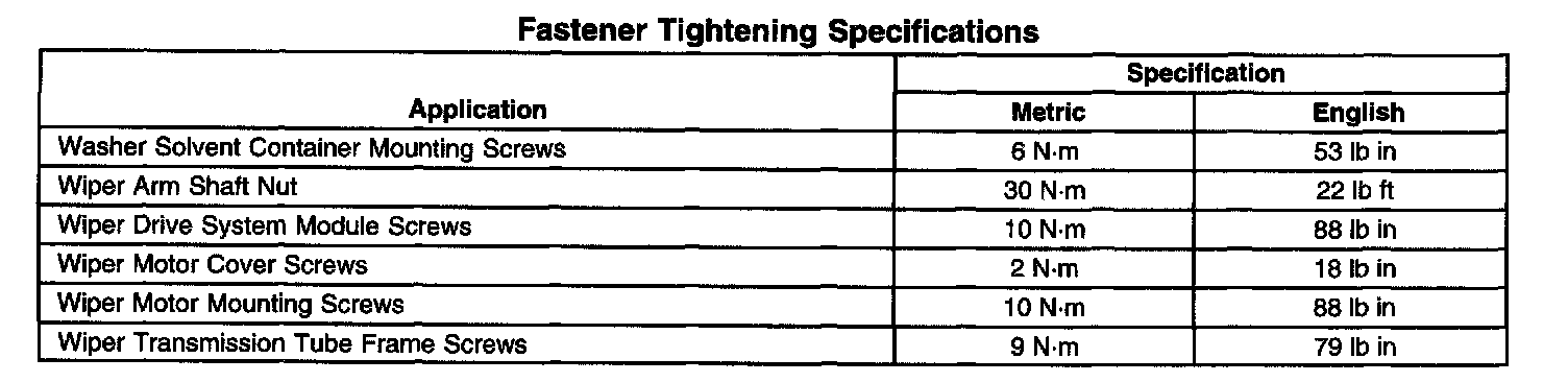 Wiper and Washer Systems: Specifications