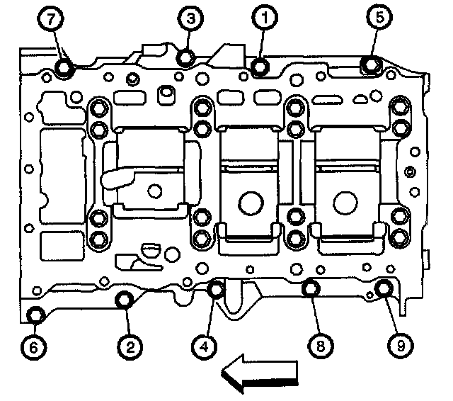Tighten the lower crankcase perimeter bolts (1 through 9) in proper sequence.