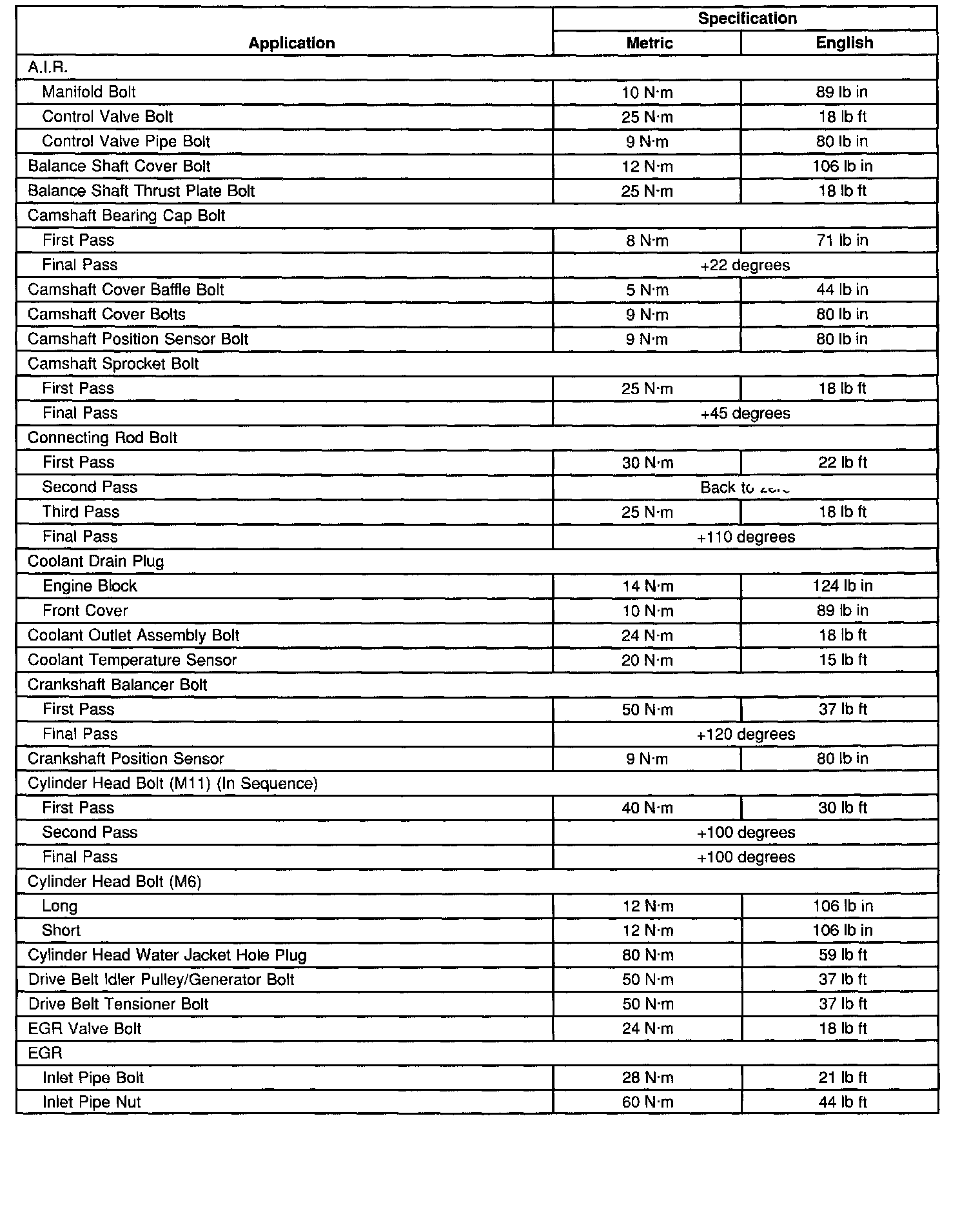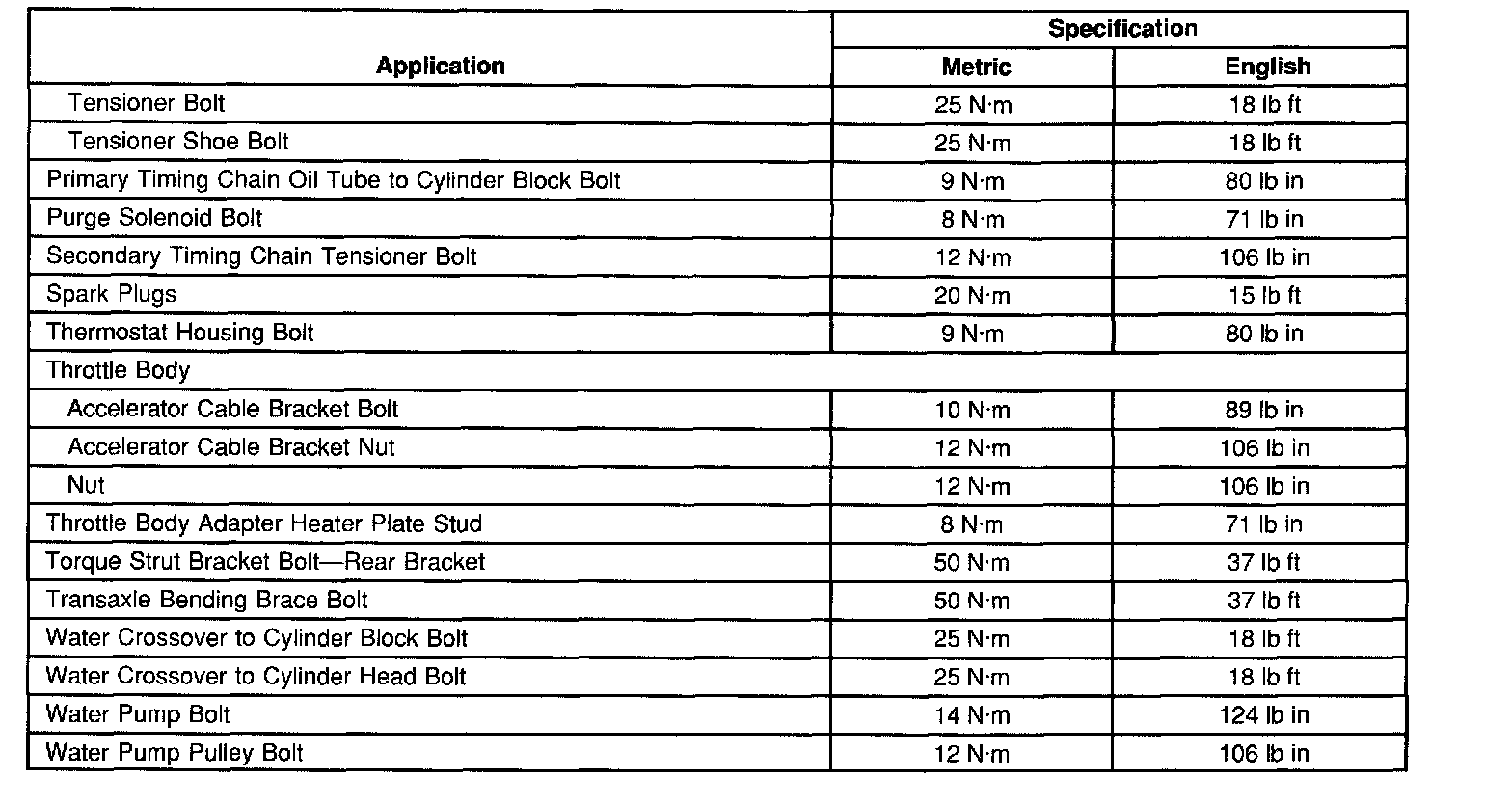 Fastener Tightening Specifications