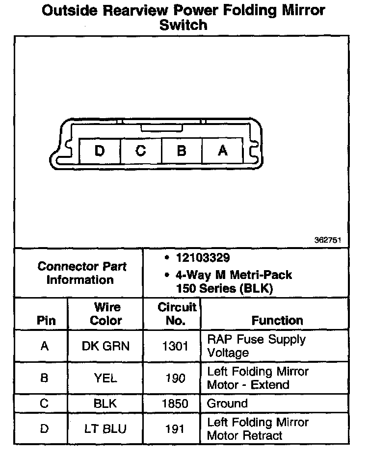 Outside Rearview Power Folding Mirror Switch: