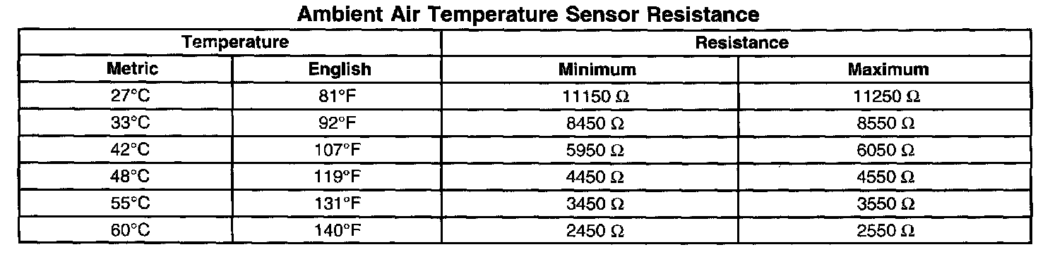 Ambient Air Temperature Sensor Resistance: