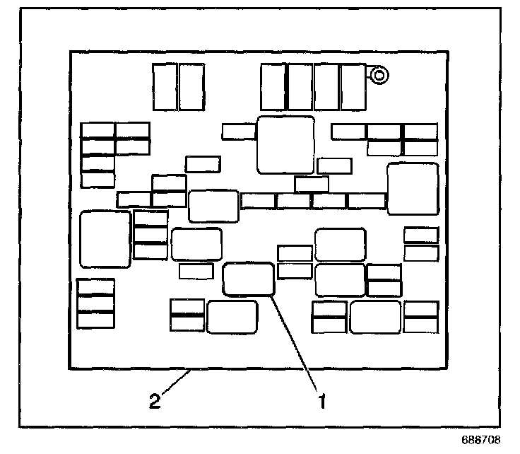 1. Install the compressor relay (1) to the underhood fuse block (2).
