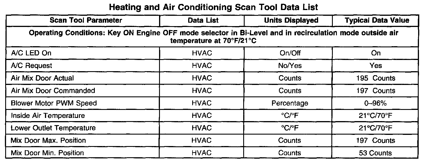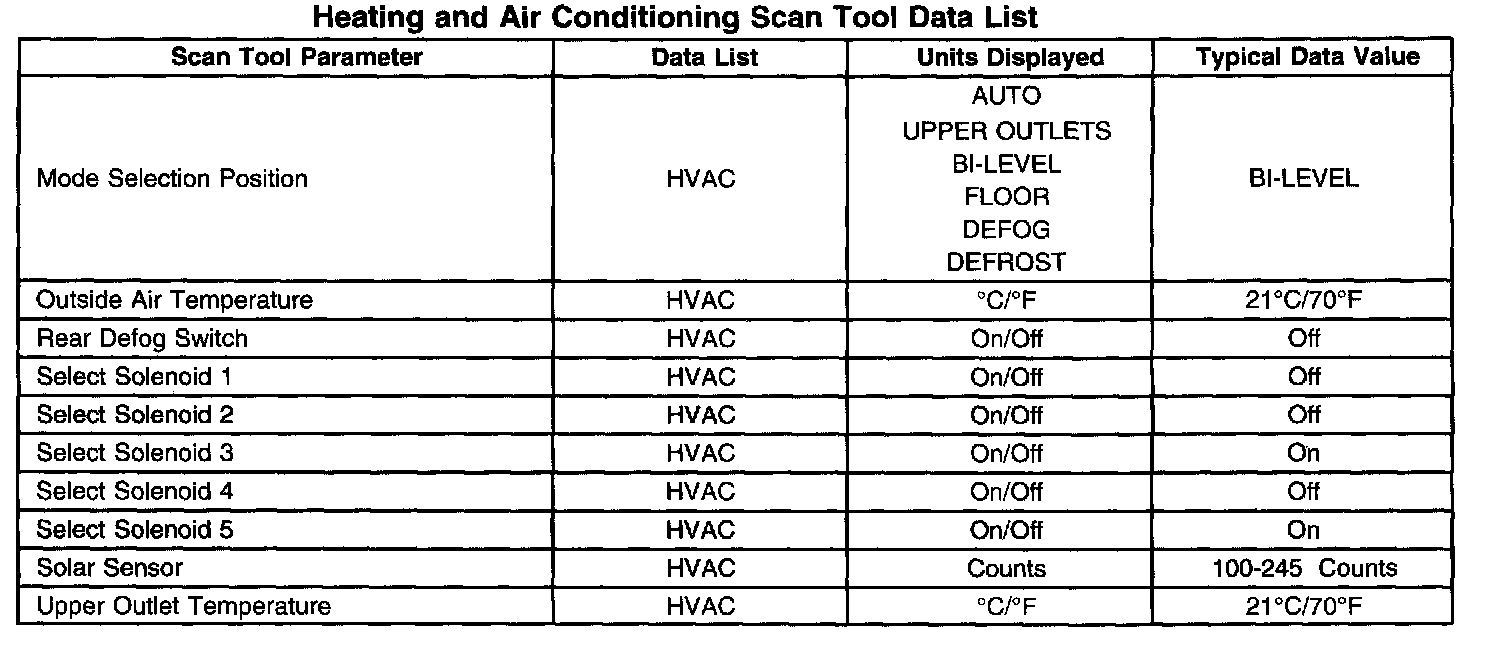 Heating And Air Conditioning Scan Tool Data List (Part 1 Of 2):