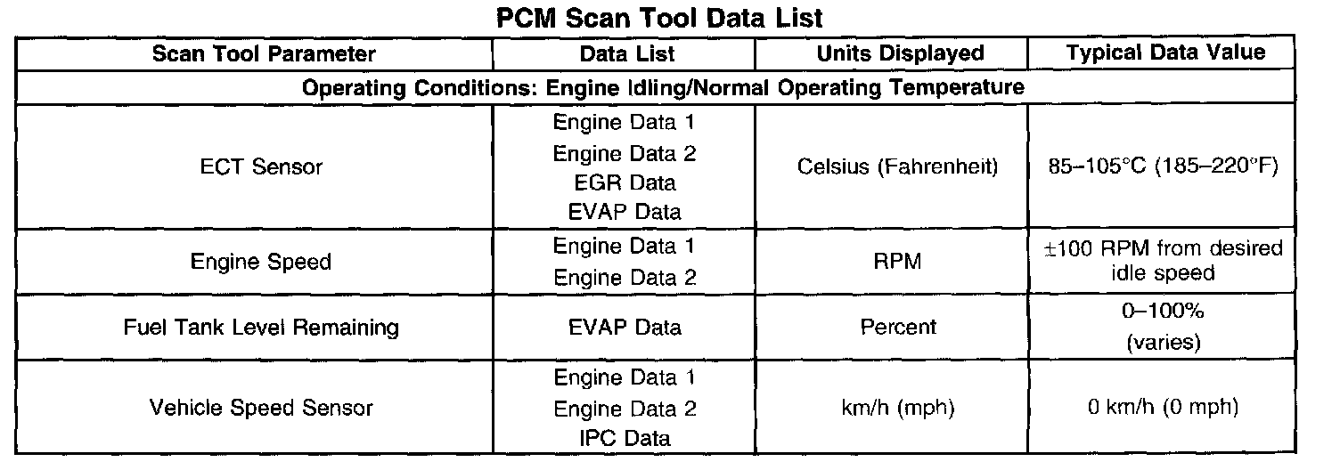 PCM Scan Tool Data List: