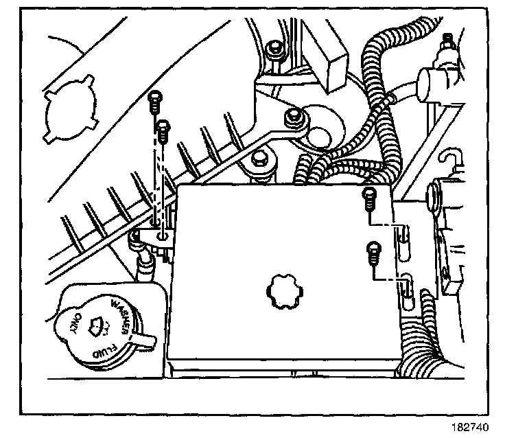 5. Remove the bolts that attach the underhood electrical center to the underhood electrical center support bracket.