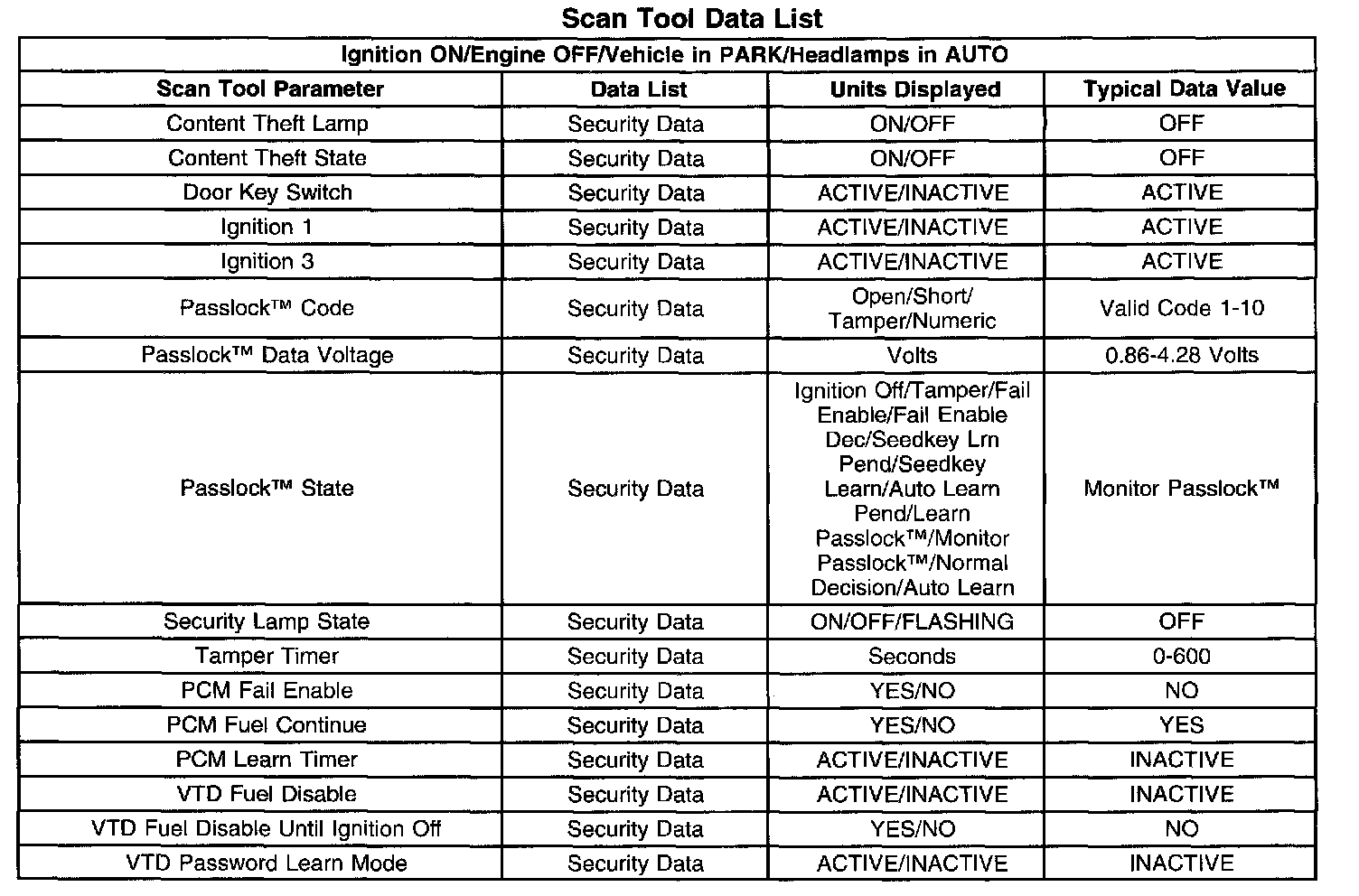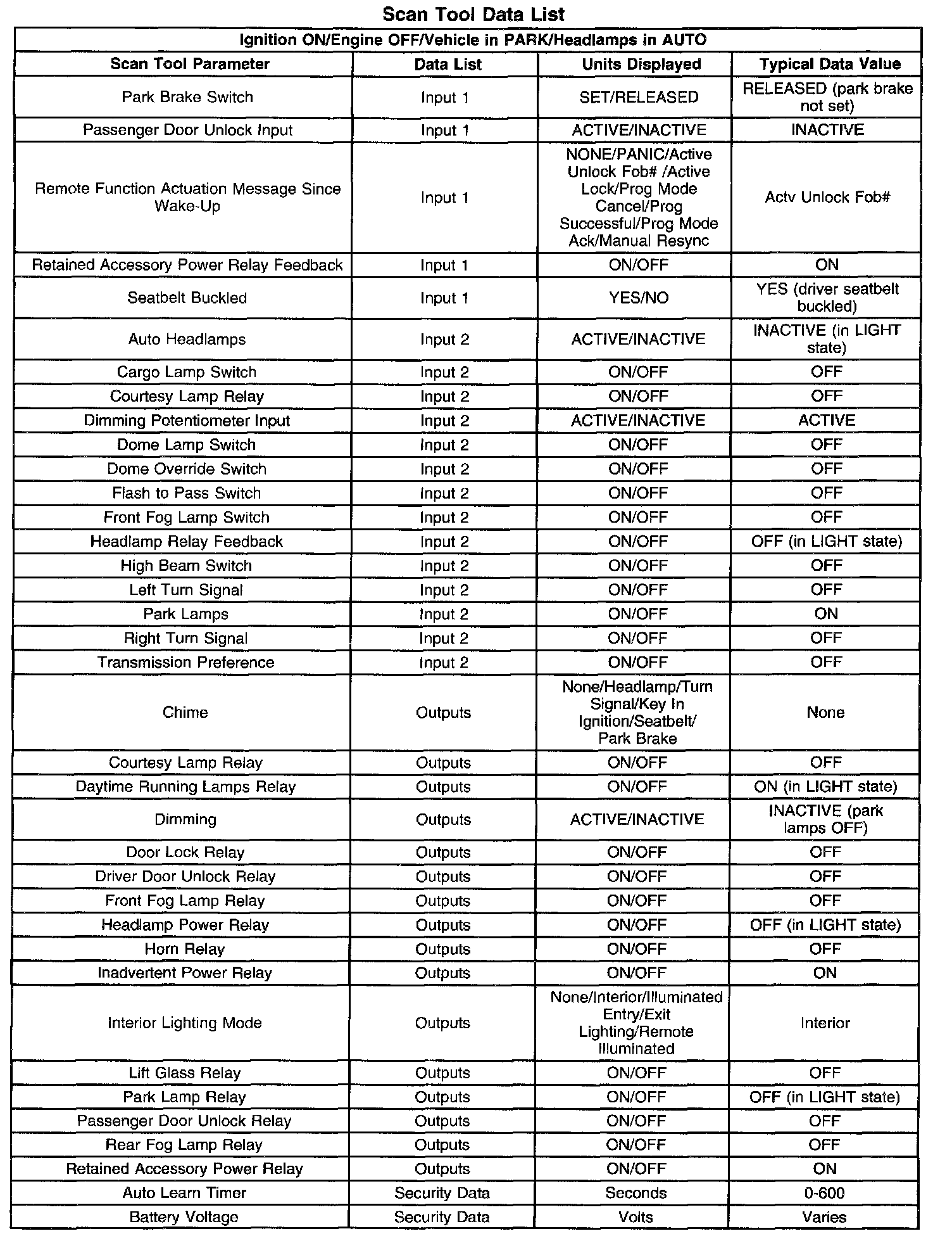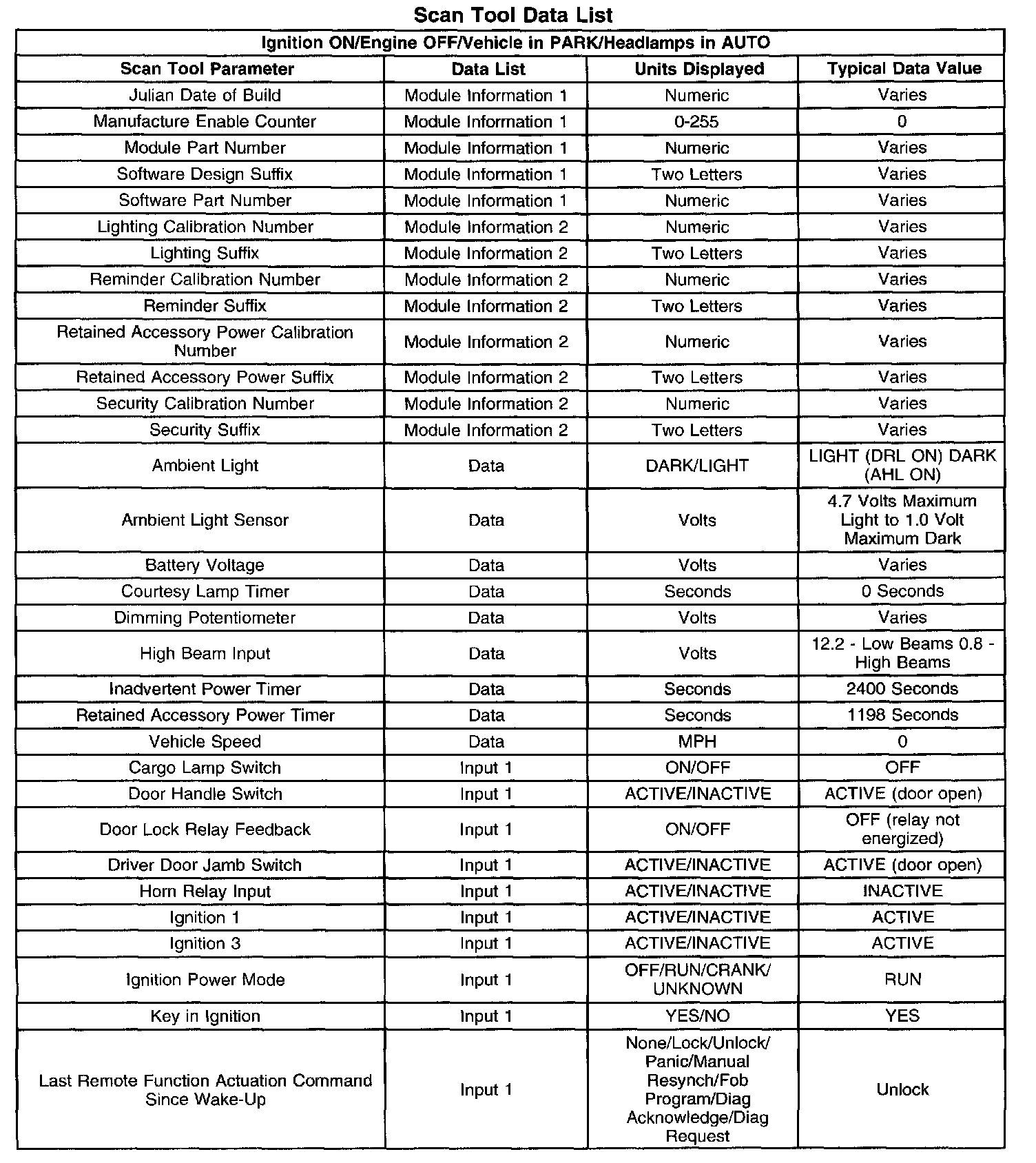 Scan Tool Data List