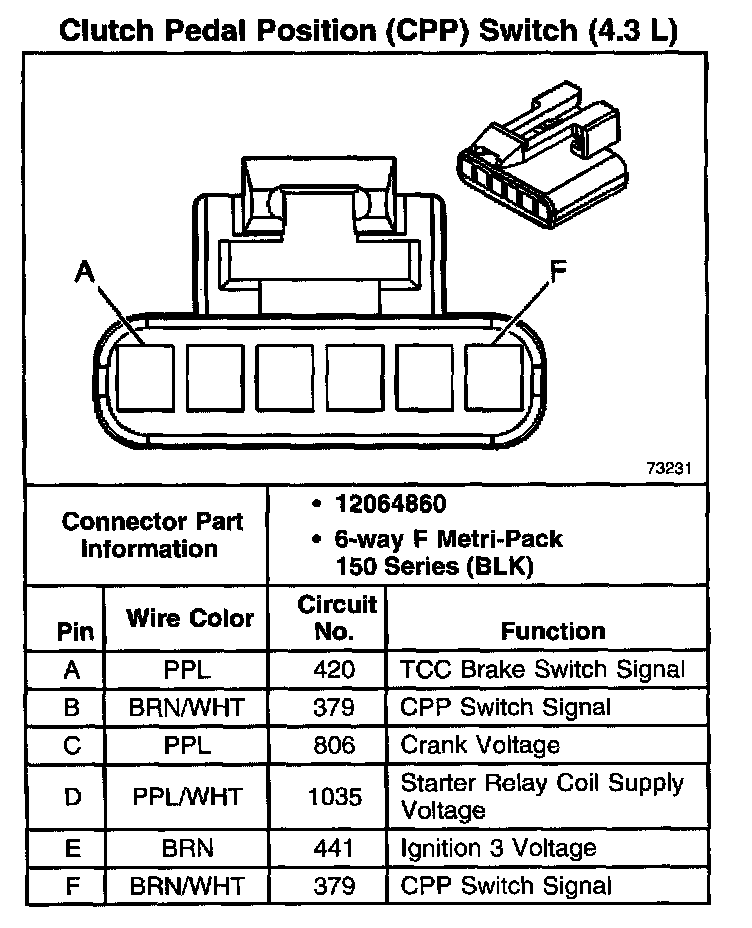 Clutch Pedal Position (CPP) Switch (4.3 L):