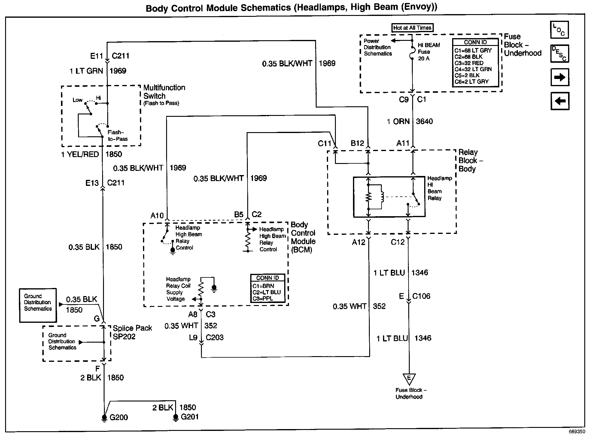 Body Control Module Schematics: Headlamps, High Beam (Envoy):