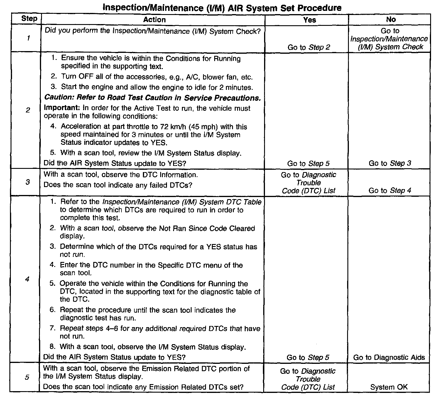 1. Make sure you perform the I/M System Check before performing this test. Failure to do so may result in difficulty updating the status to YES. Inspection/Maintenance (I/M) System Check