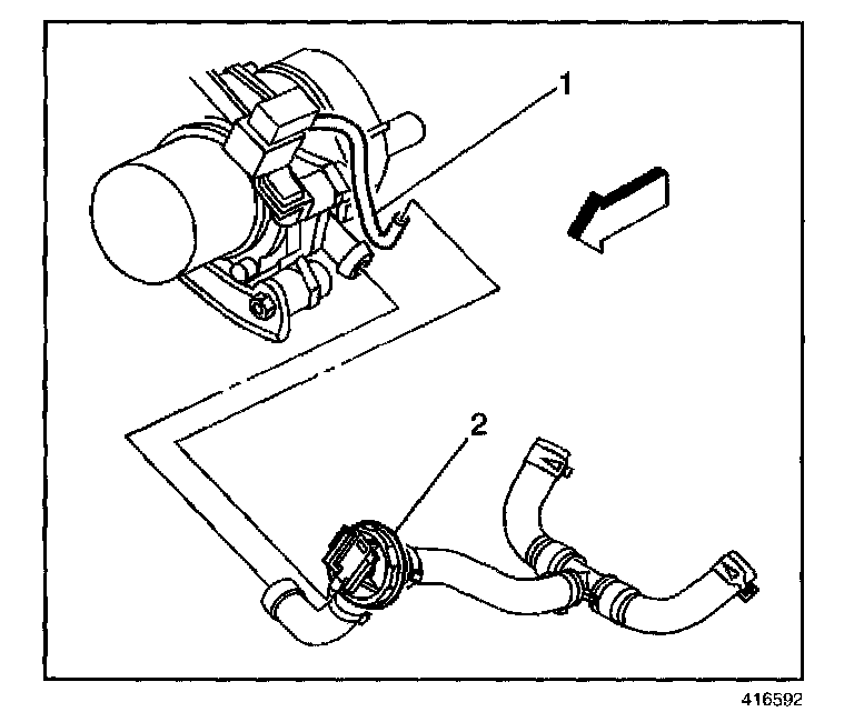 7. Disconnect the vacuum hose (1) from the shut-off valve (2).