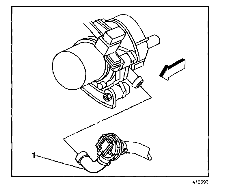 8. Disconnect the shut-off valve hose (1) from the AIR pump by releasing the spring clamp.