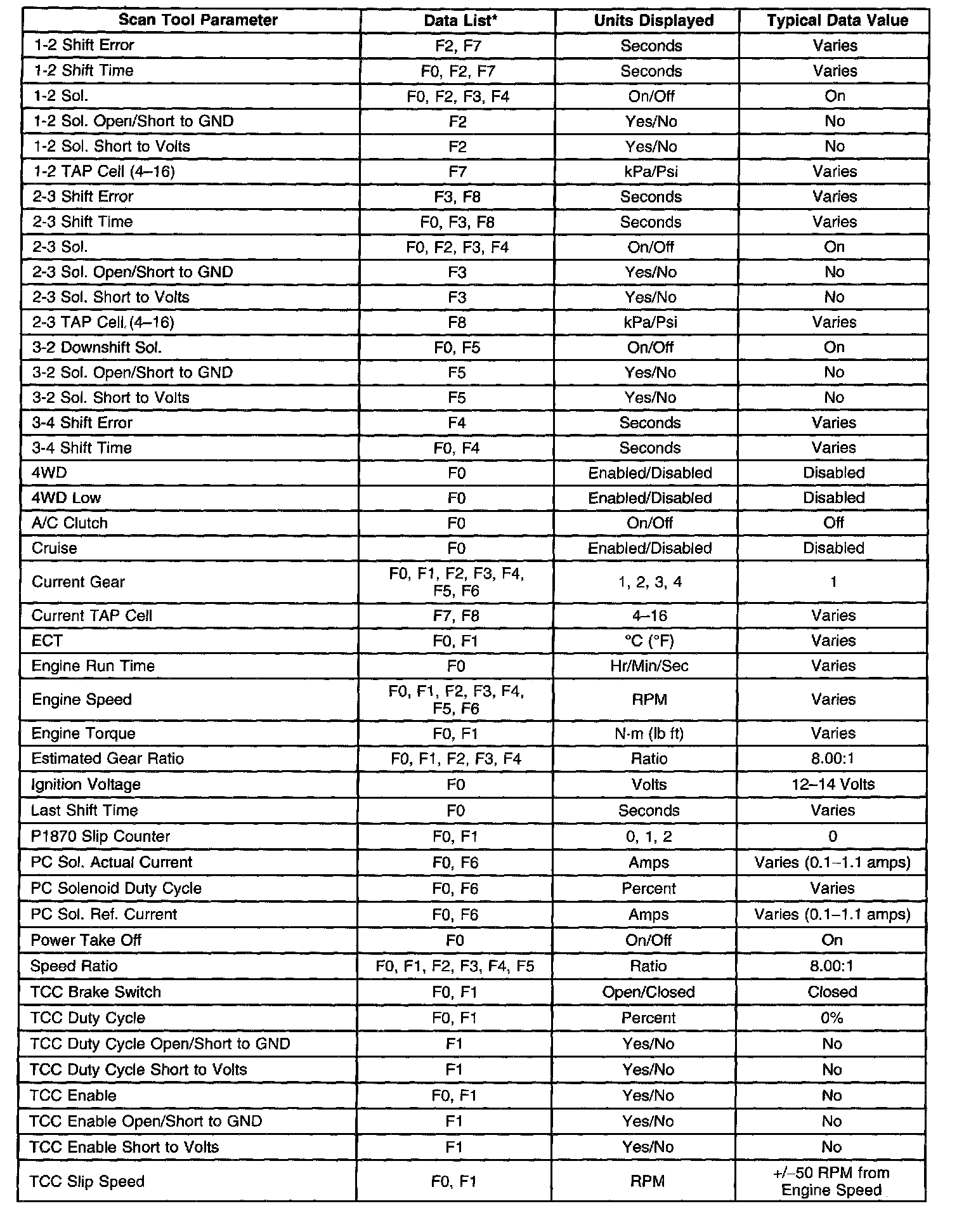 Transmission Scan Tool Data ListUse the scan tool data list under the following conditions:
