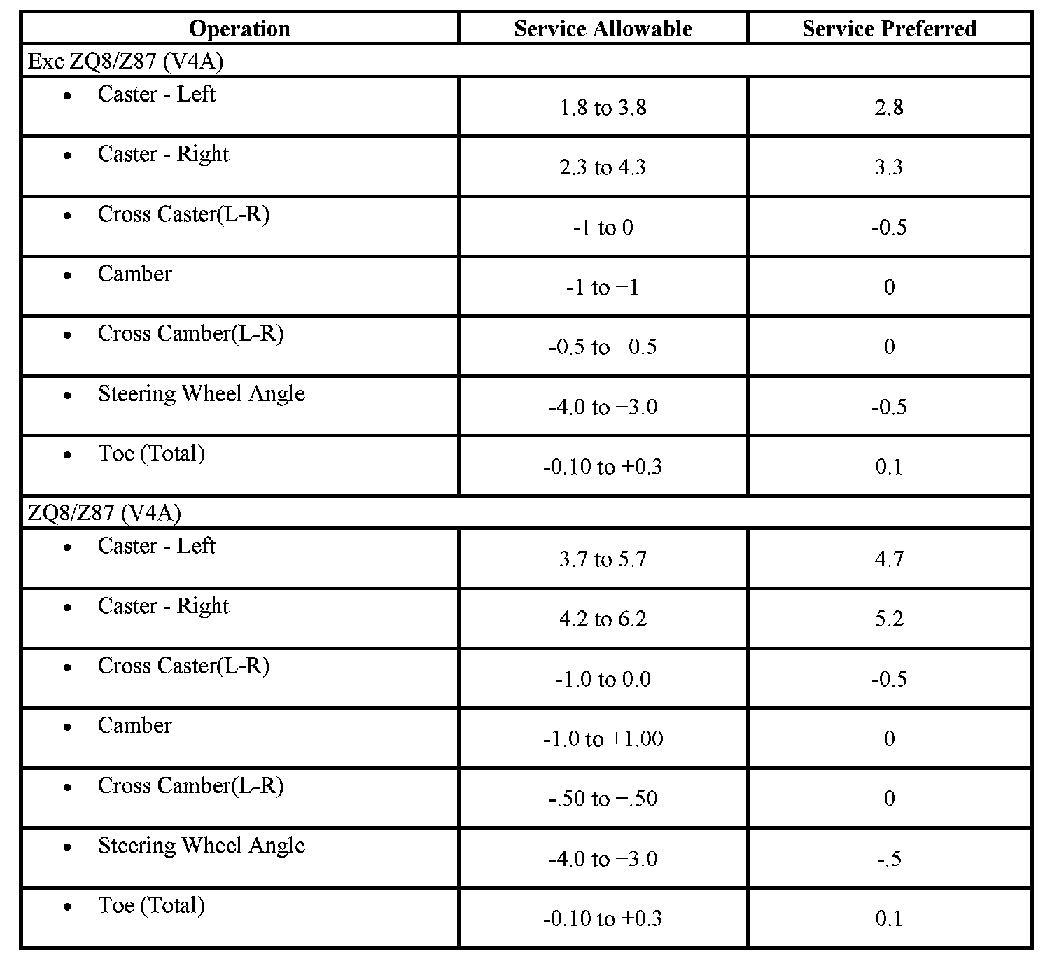 Wheel Alignment Specifications