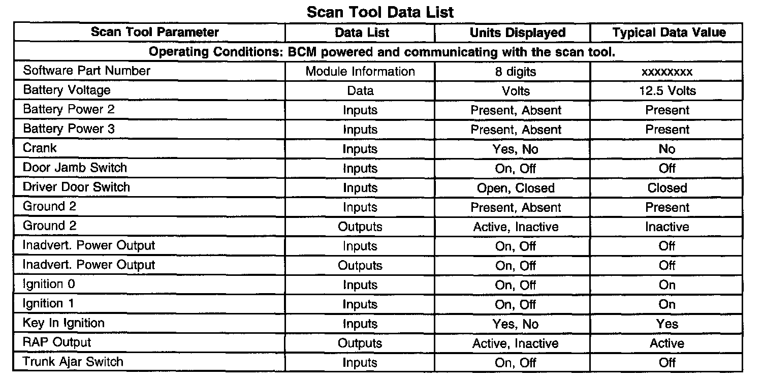 Scan Tool Data List: