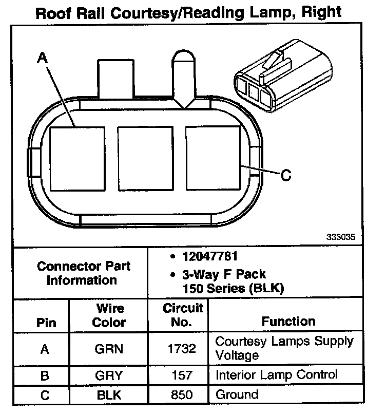 Roof Rail Courtesy/Reading Lamp, Right: