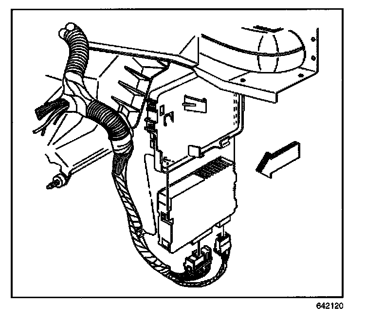 4. Push the BCM up and move the bottom of the BCM away from and out of the mounting bracket slot in order to remove the BCM.