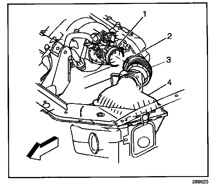 3. Loosen the band clamp (2) at the throttle body (1), and disconnect the air duct (3) from the throttle body.