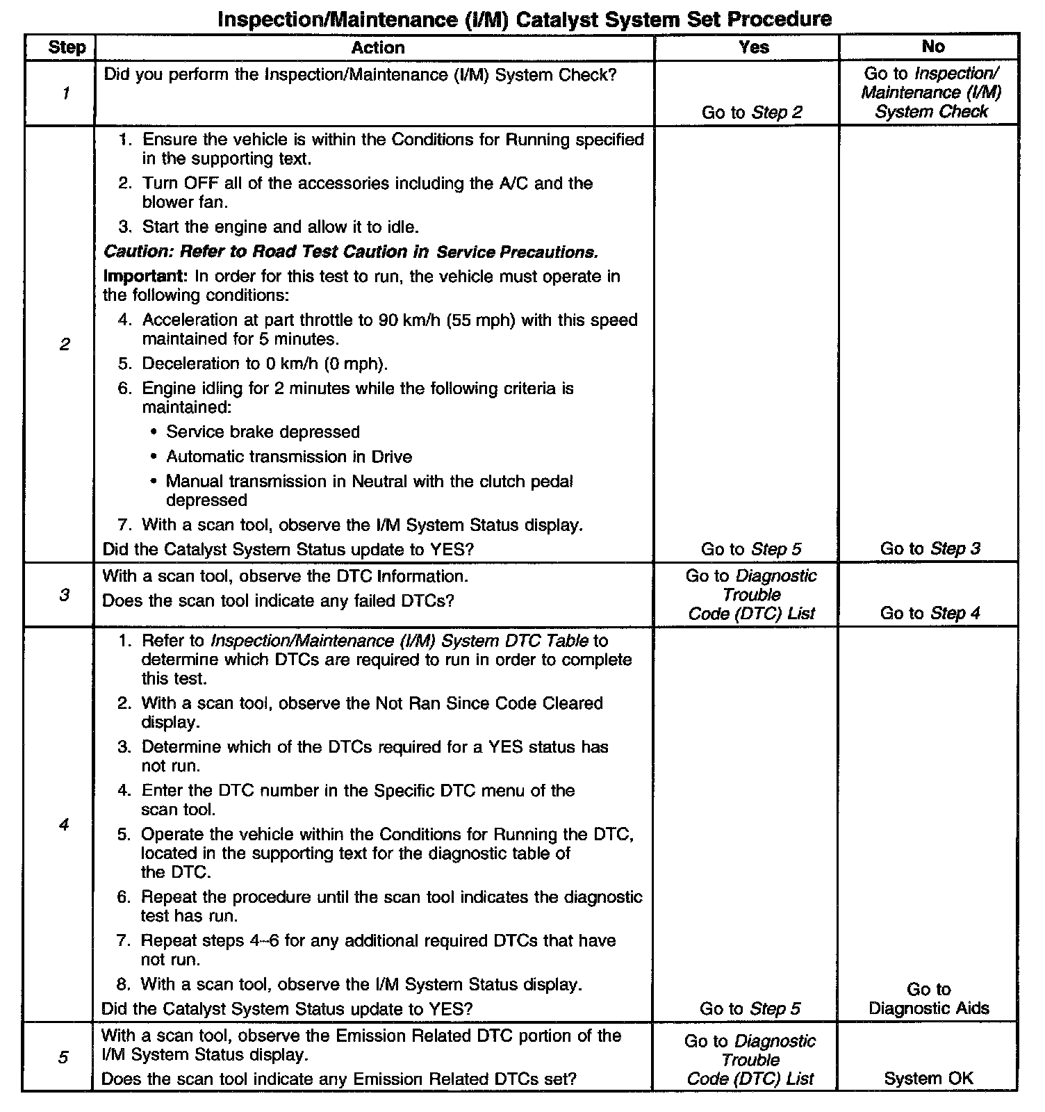 1. Make sure you perform the I/M System Check before performing this test. Failure to do so may result in difficulty updating the status to YES. Inspection/Maintenance (I/M) System Check